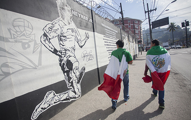 Copa del Mundo. Aficionados mexicanos en exterior campo entrenamiento de la selección de México. Santos.